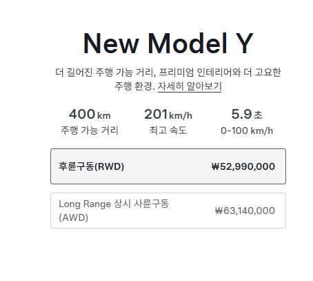 모델 Y 가격은 보조금을 받기 전 5290만 원,