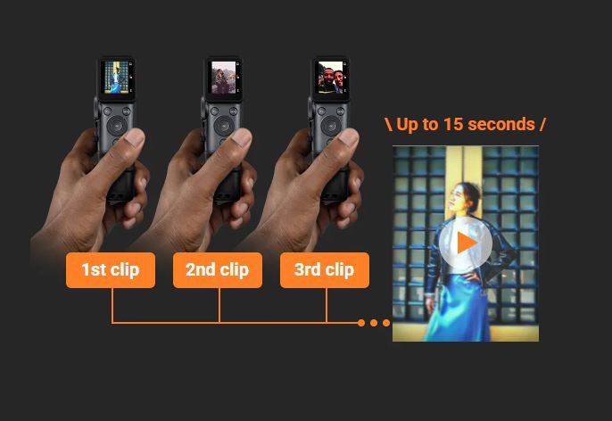 최대 15초 클립을 촬영해 앱에서 이어붙여 30초 영상으로 만들고, 그 중 프레임을 골라 인화하거나 QR 코드가 인쇄된 사진으로 출력해 영상을 온라인에서 볼 수 있게 합니다.
