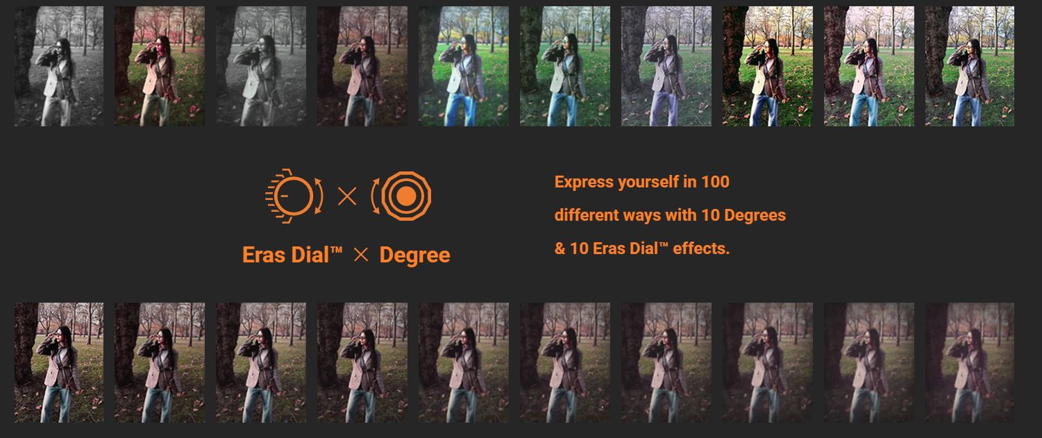그리고 이미지 품질을 1930년대부터 2020년대까지 각 시대를 이미지한 묘사를 얻을 수 있는 10종류의 화면 효과 기능을 다이얼로 선택할 수 있다.