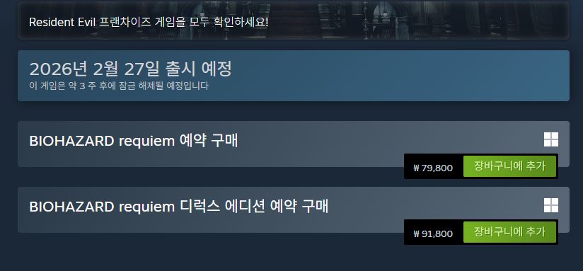 BP's : 2026년 기대작 중 하나인 바이오 하자드 레퀴엠이 2월 27일 발매.