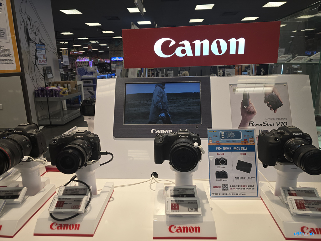 삼성전자, LG전자, 애플, 소니, 캐논, 니콘 등 각 브랜드 제품들이 모여 있고