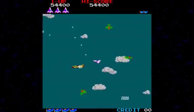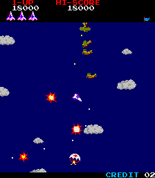과거에서 미래로 다섯 시대를 타임 슬립을 하면서 전방위 360도에서 차례로 덮쳐 오는 적 전투기를 격추하는 게임