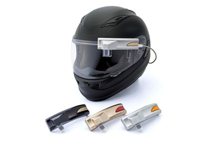 BP's : 재팬 디스플레이가 바이크 헬멧에 장착되는 소형 헤드업디스플레이(HMD) 'XHD-03'를 CES ASIA에서 공개.