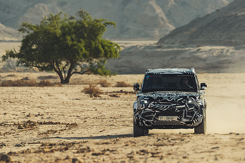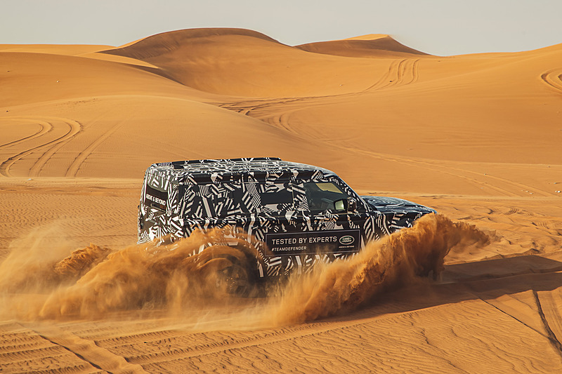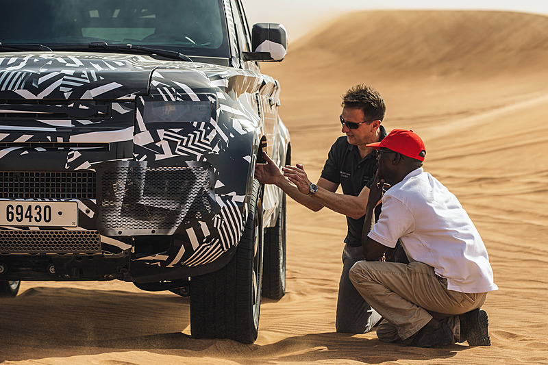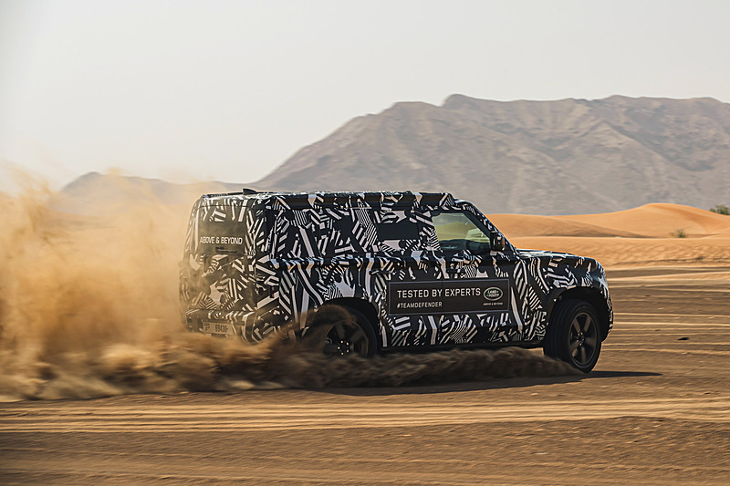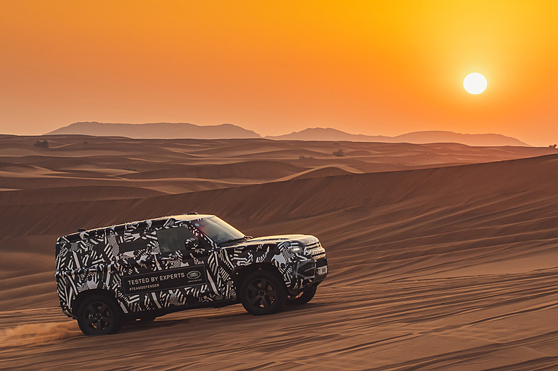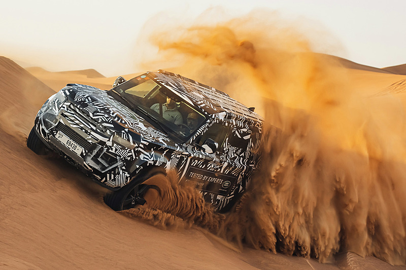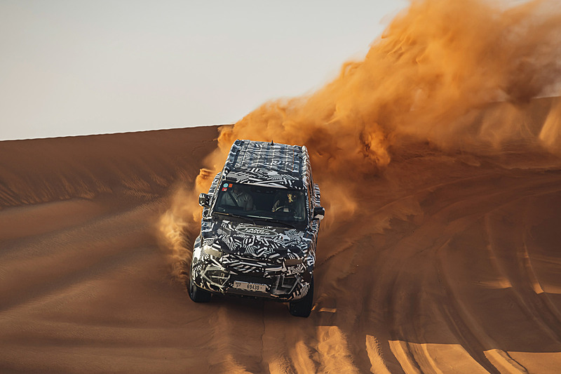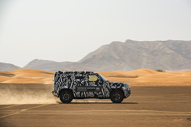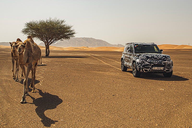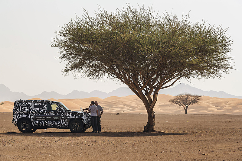 신형 디펜더 프로토타입 차량을 사용해 모래사막 등 험로를 주파했다.