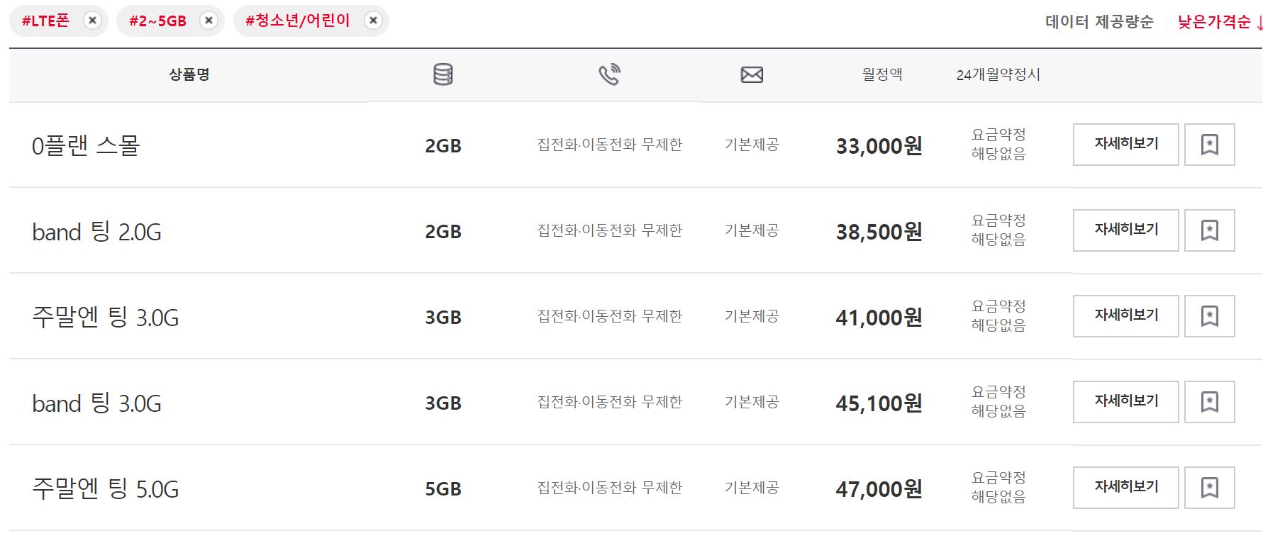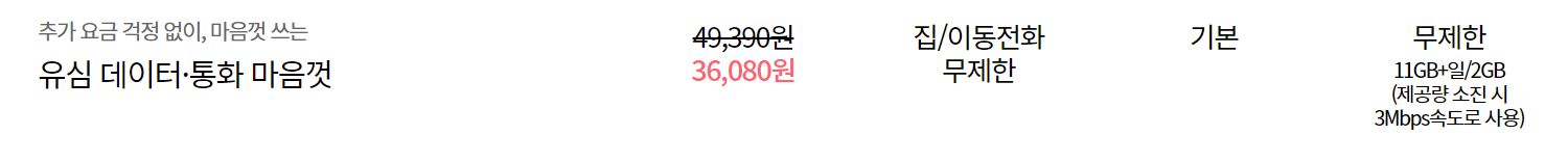 일단 기존은 SKT 요금제로 3만원 정도 냈는데, 언제나 데이터가 부족해서 넘겨줘야했다.