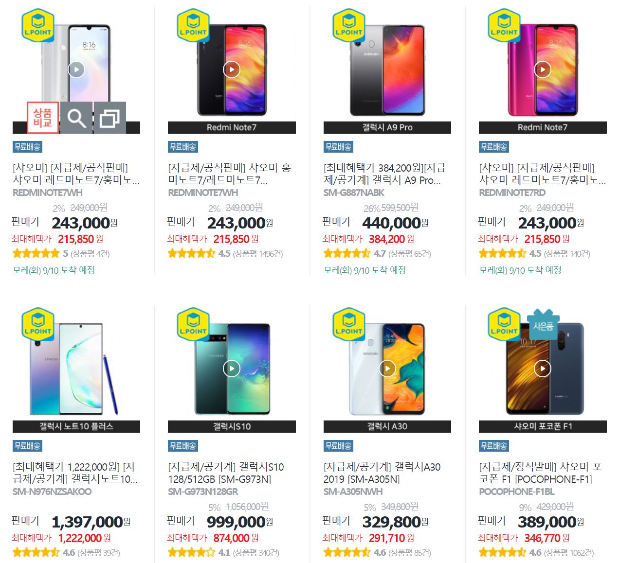 노트9 128GB가 71만5000원(L포인트 신용카드 캐시백 다 받았을 때)