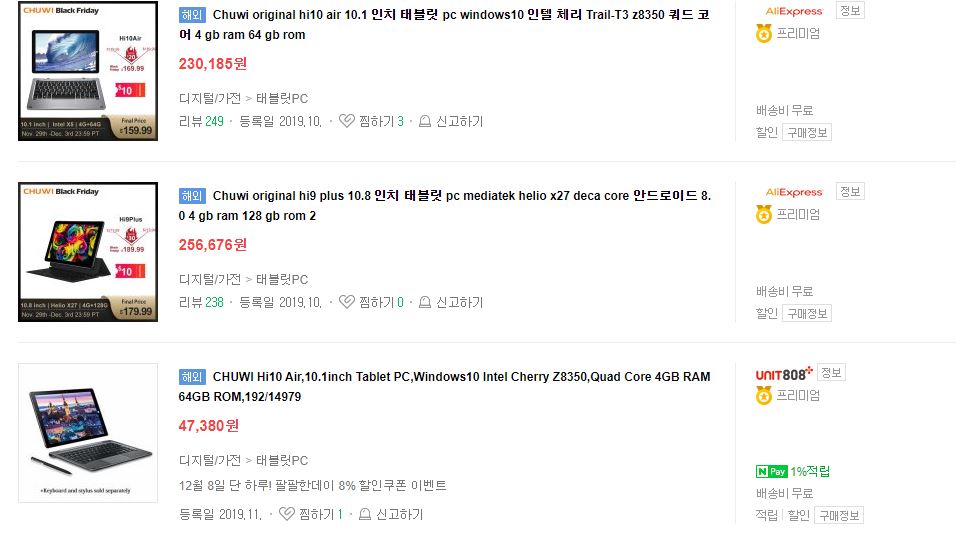 알리익스프레스나 지마켓 같은 곳도 있는데, 노트북과 태블릿 가격이 엄청나다.