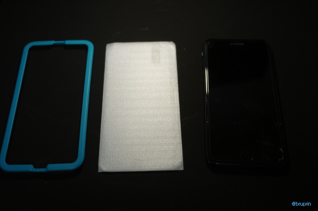 가이드가 있어서 아이폰에 먼저 이 플라스틱 가이드를 장착한 뒤에 붙이면 위치를 파악할 필요 없이 바로 장착 가능.
