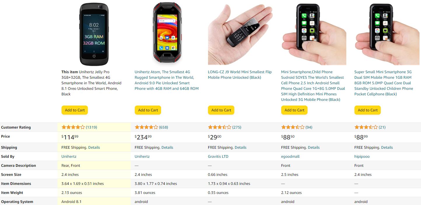 화면이 아주 커지는 추세를 거스르는 아주 작은 스마트폰들.