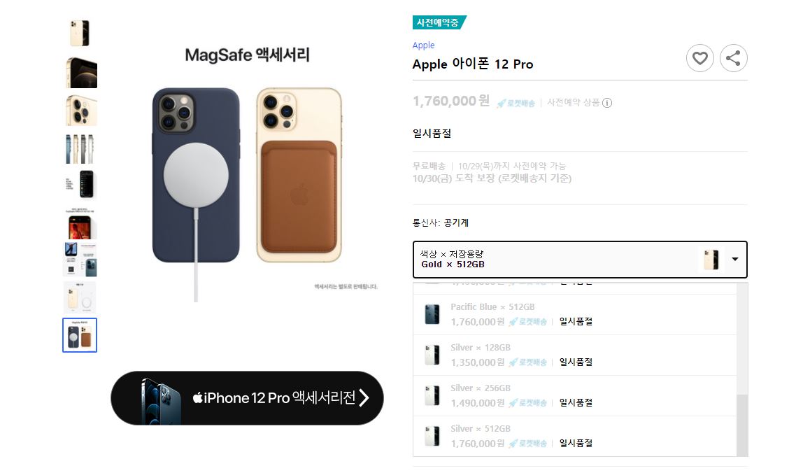 BP's : 아이폰 12 프로. 쿠팡에서 구입하기로 하고 구매 시간 맞춰놓고 3명이 동시에 접속했는데