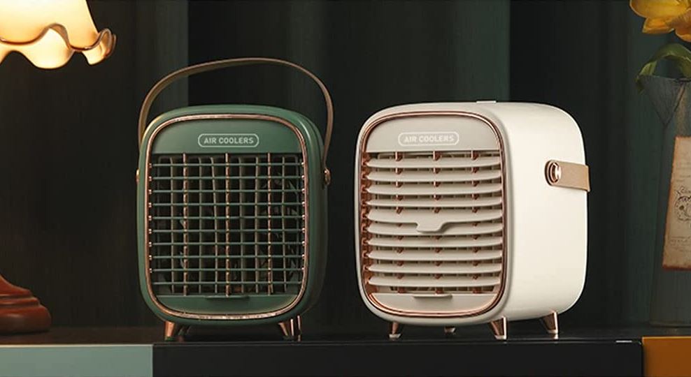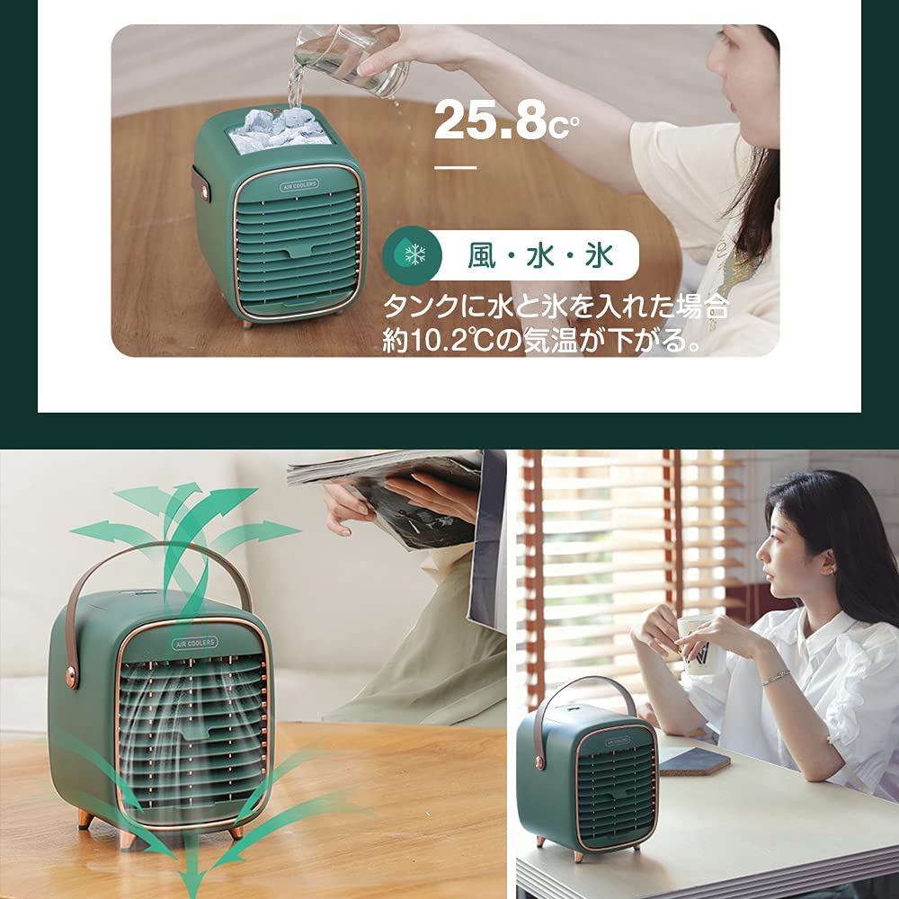 탁상 사이즈의 컴팩트한 냉풍기로 물 또는 얼음을 넣으면 바로 찬바람을 낸다.