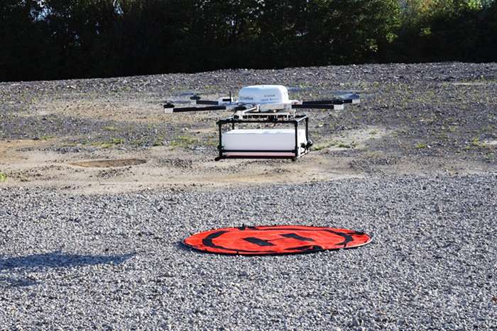 실험은 마을의 특산품을 약 3km 떨어진 곳까지 드론을 이용해 자동으로 운반하는 것.