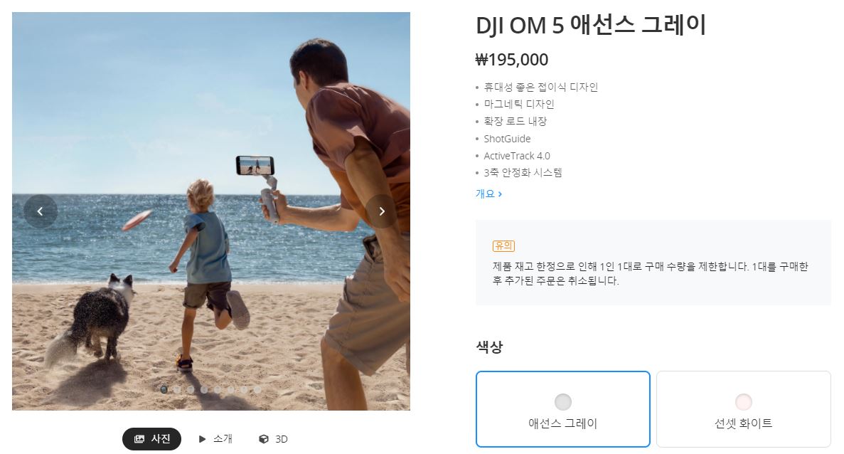 관련링크 : https://www.dji.com/kr/om-5?site=brandsite&from=homepage