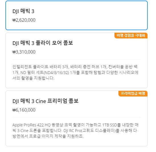 그런데 이제 매빅도 취미로 찍기에는 부담스러운 가격이 되어 버렸다.