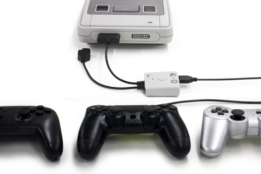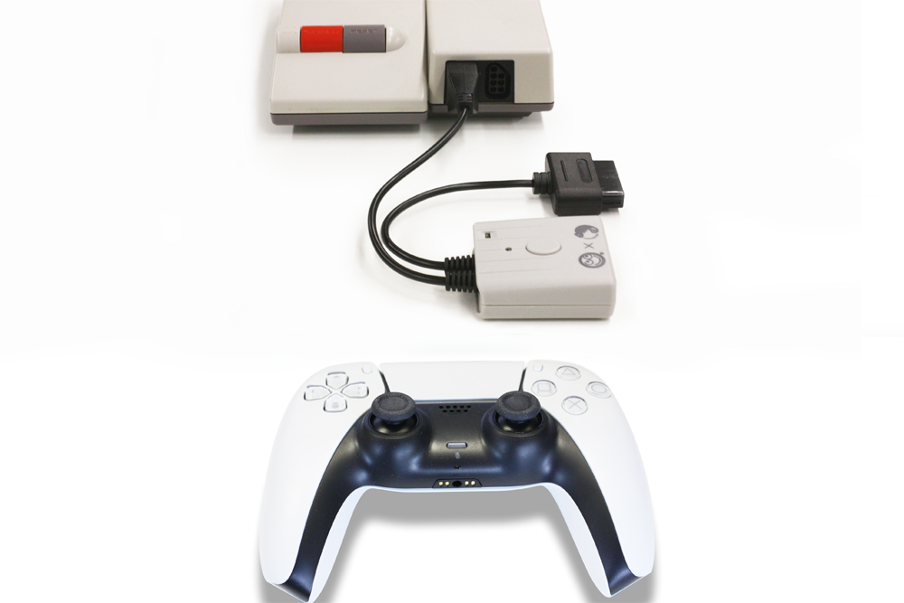 패미컴이나 슈퍼패미컴에서 PS4, PS3 컨프롤러를 사용할 수 있다. 닌텐도 스위치용 프로 컨트롤러도 가능.