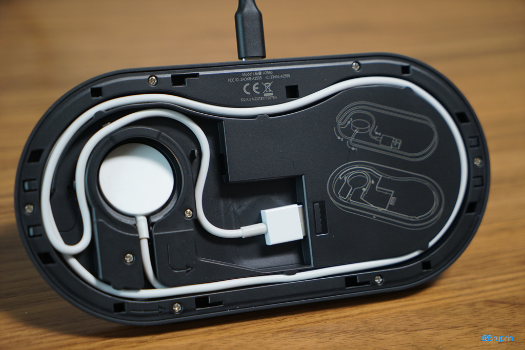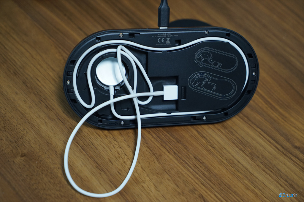 세워서 무선 충전, 오른쪽은 애플워치 케이블을 끼우면 된다.