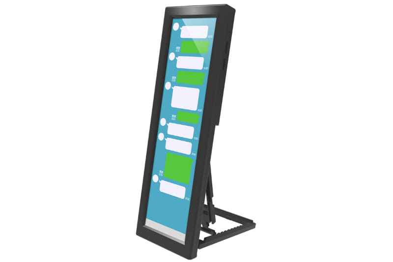 8.8인치 세로형 제품으로 480 X 1980. 10단계로 각도를 조정할 수 있는 스탠드가 붙어 있다.