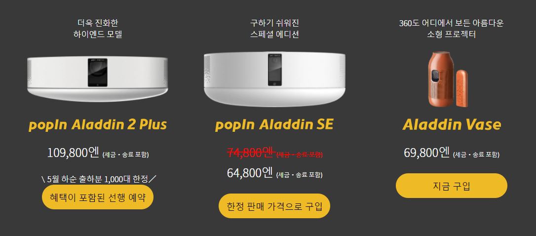BP's : 프로젝터 업체 팝인알라딘에서 천장에 장착하는 프로젝터 '팝인 알라딘 2 플러스(popIn Aladdin 2 Plus)' 를 공개.