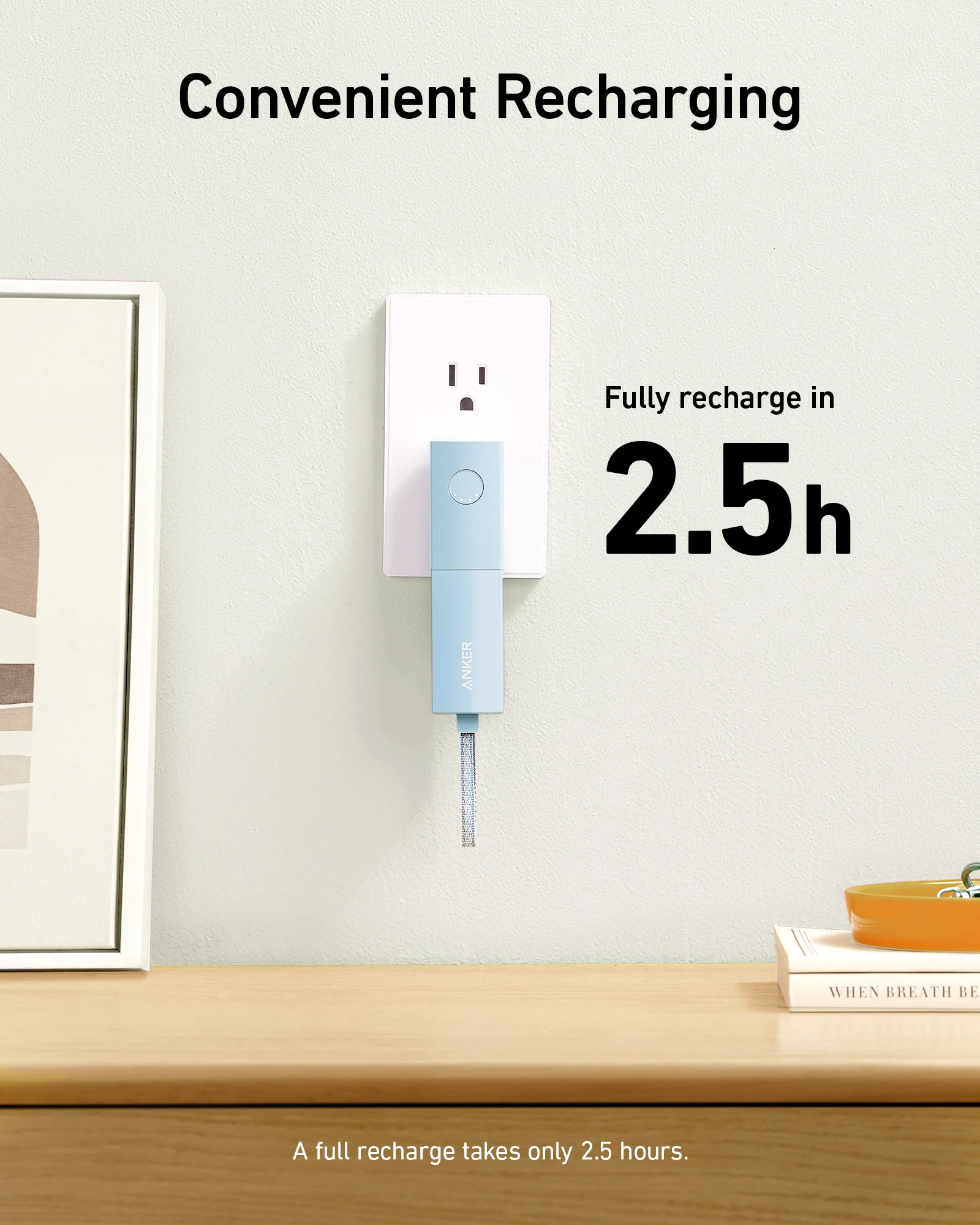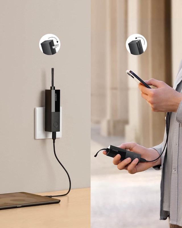 Home and Away: When the battery is low, charge your device from a wall outlet or on the go with the built-in portable charger. Ultra-Compact: The 5,000mAh cuboid-shaped portable charger has a built-in foldable plug so it's almost unnoticeable in any pocket