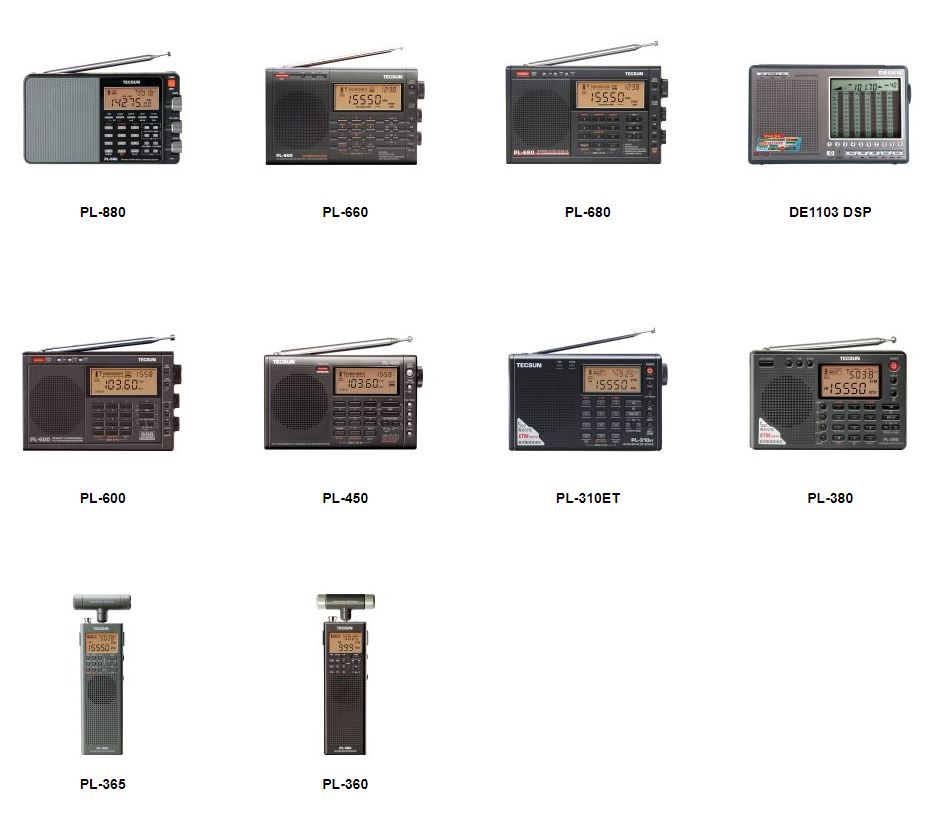 Tecsun은 다양한 형태의 라디오를 판매하고 있다.