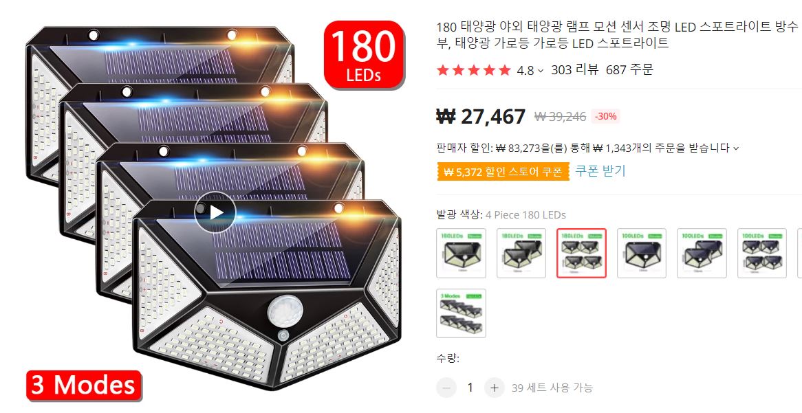 야외에 이런 센서등이 필요한 사람이라면 추천.