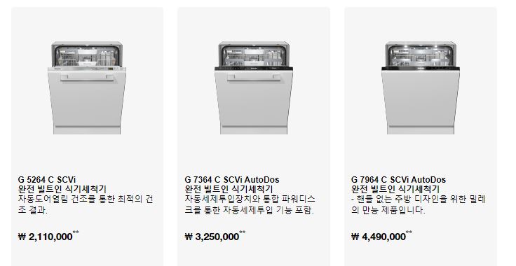 참고로 국내 판매되는 밀레 식기세척기는 다음과 같다.
