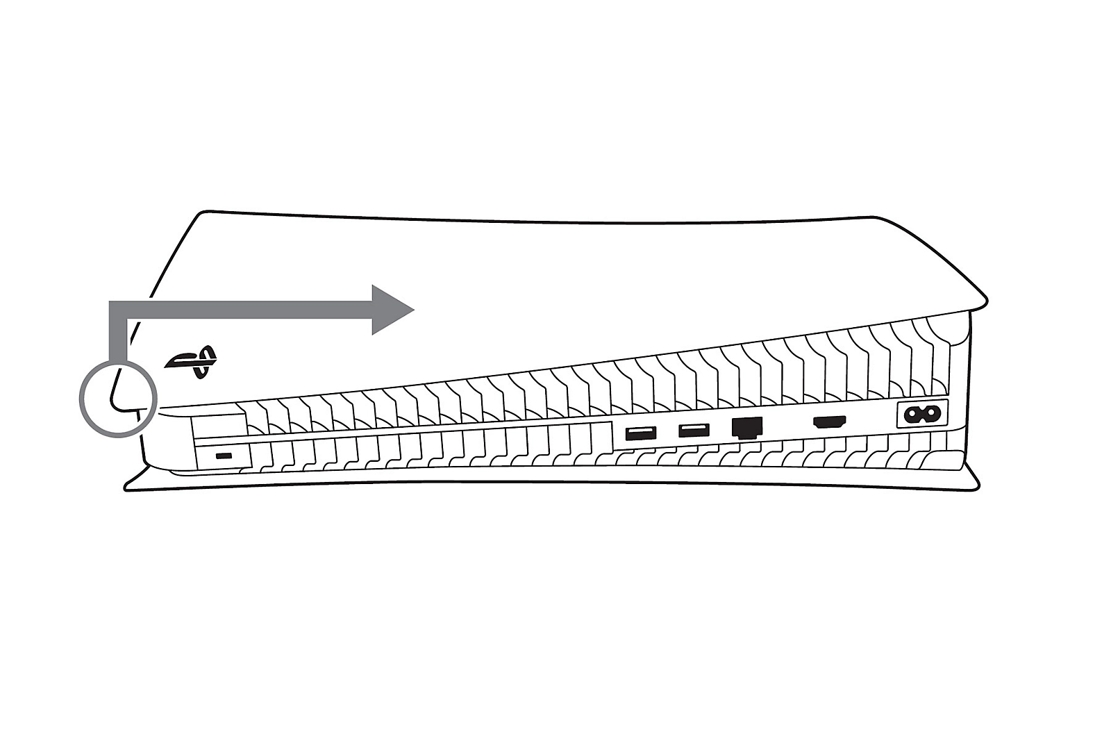 PS5 콘솔 커버를 분리하고 교체하는 방법 상단 PS5 콘솔 커버에는 PlayStation 로고가 있습니다. PS5 콘솔의 전원을 끕니다. 그런 다음 PS5 콘솔에서 모든 케이블과 장치를 분리하세요. PS5 콘솔이 식