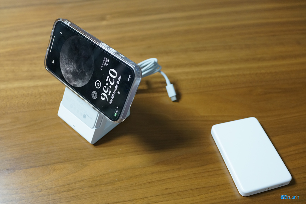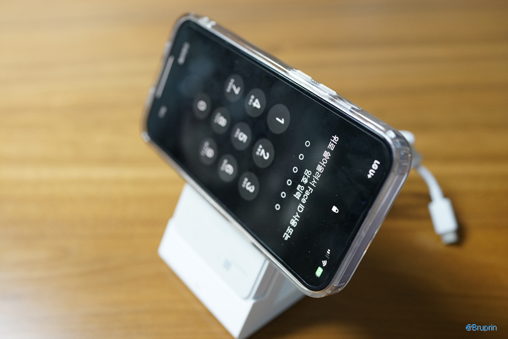 배터리를 충전하는 상태에서 아이폰(맥세이프 지원 기종 아이폰 12~14)를 거치해서 쓰면 된다.