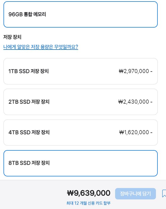 여기에 램과 SSD 용량을 늘리면 기하급수적으로 가격이 높아진다.