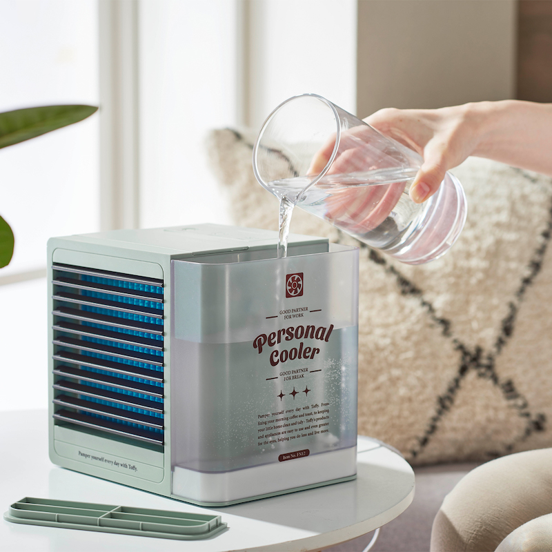물은 필터를 거쳐서 나오며 책상 위에 올려 놓고 1인이 냉방용으로 쓰는 데 적함.
