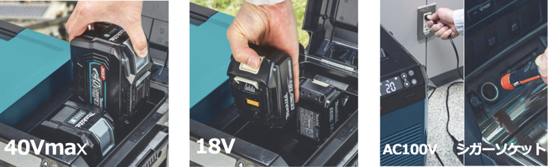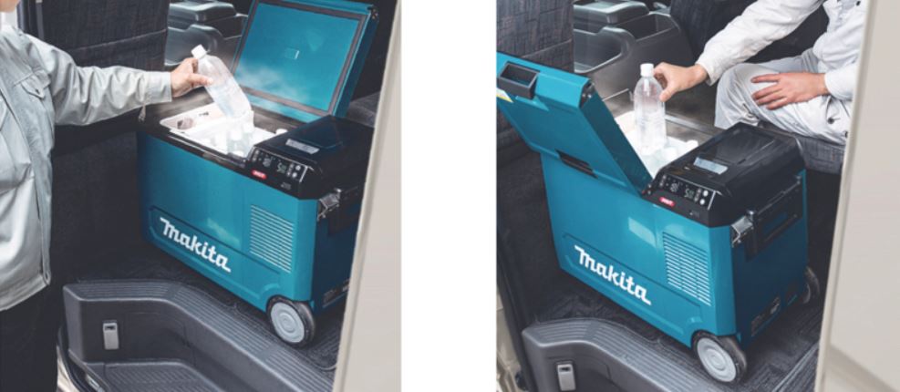 신제품은 마키타가 자사 충전식 공구에 사용하는 '40Vmax 리튬 이온 배터리' 또는 '18V 리튬 이온 배터리'를 사용하는 이동식 냉장고.