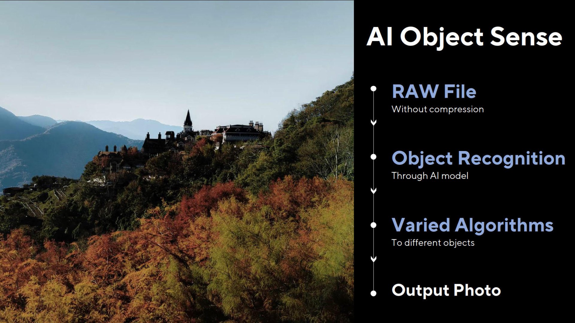 RAW 촬영 후, 오브젝트를 AI가 검출해 조정한다.